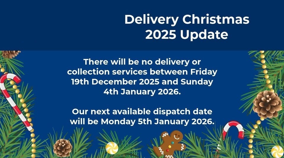 Please note: There will be no delivery or collection services from Friday 19th December 2025 through Sunday 4th January 2026 as we take a short festive break.
